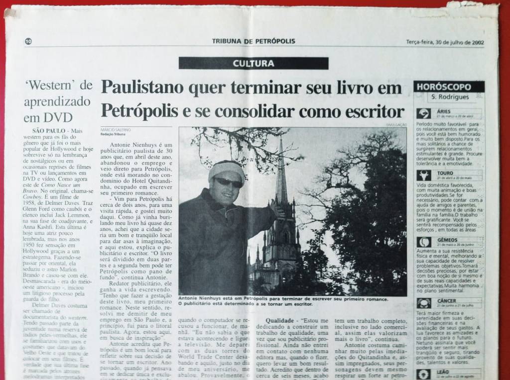 Quem nunca sonhou com um sabático criativo? Juntei minhas economias e parti pra escrever o romance que martelava na cabeça, na serra fluminense. Em Petrópolis, morei num verdadeiro cartão-postal: o Hotel Quitandinha. Nos anos 40, foi o maior hotel-cassino da América Latina (e até hoje corre a fama de mal-assombrado). Um clima digno de O Iluminado.